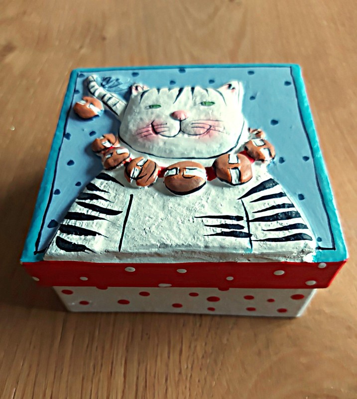 chat en relief, peint main, 9 x 9 cm, hauteur 4,5 cm.
