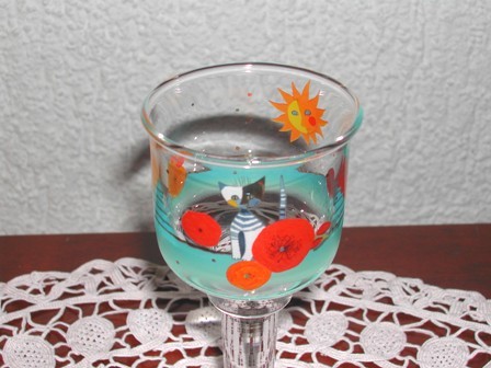en verre de la maison Goebel, avec un magnifique motif chat de Rosina Wachtmeister.