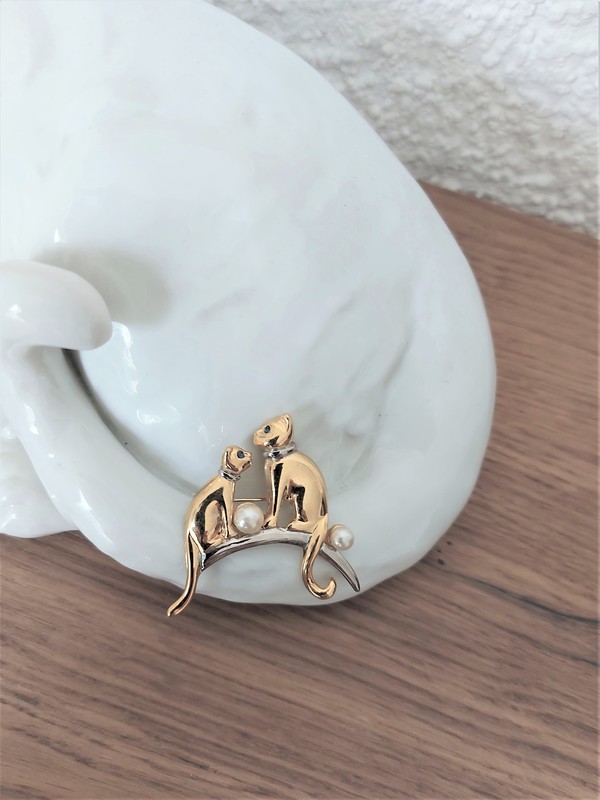 Broche chats black & withe
