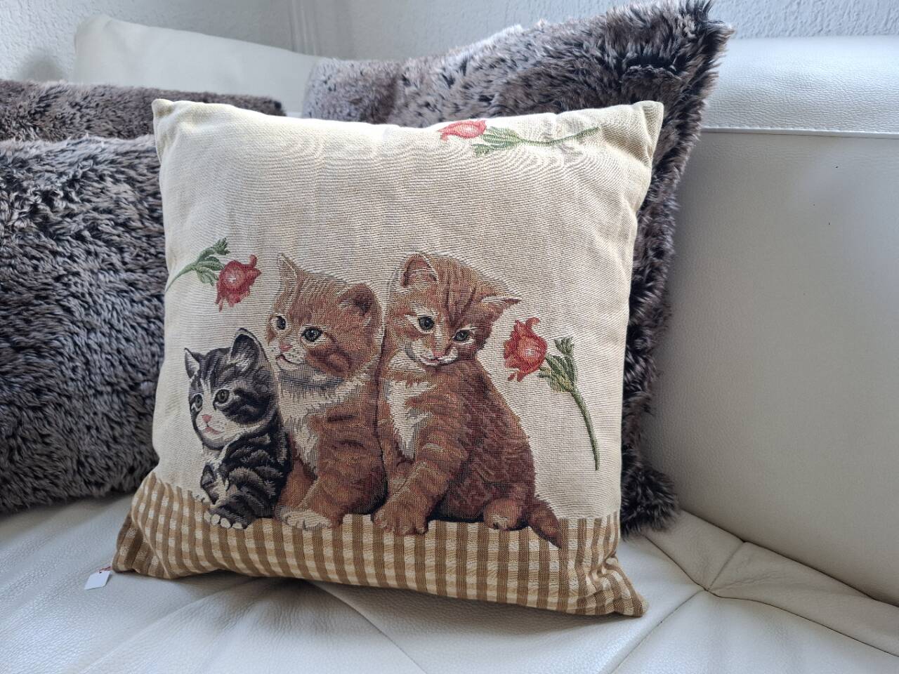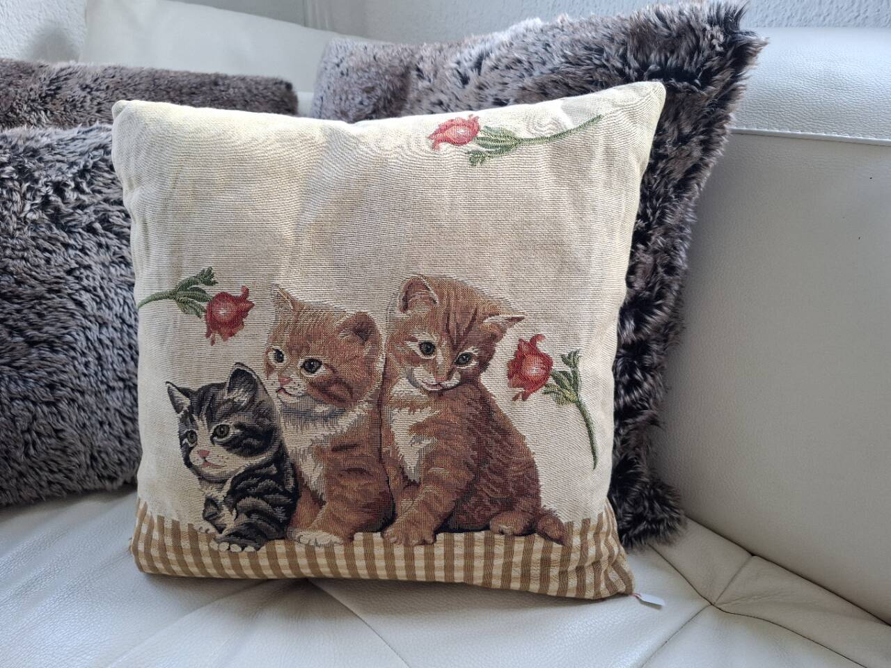 Grandeur 45 x 45 cm, avec coussin env. 41 x 41 cm.