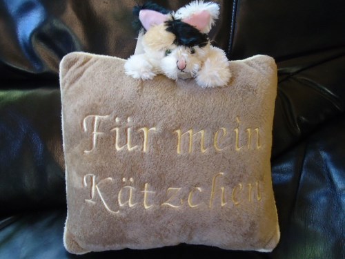 avec motif brodé: "Für mein Kätzchen"