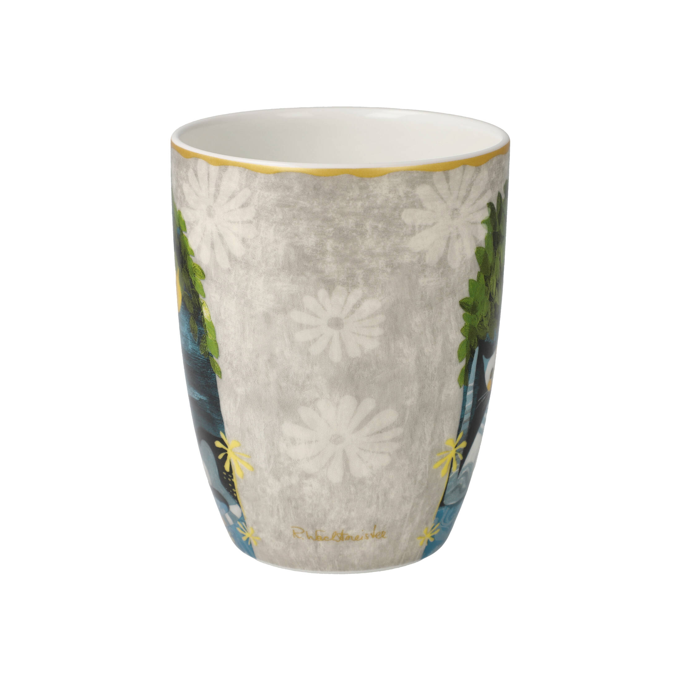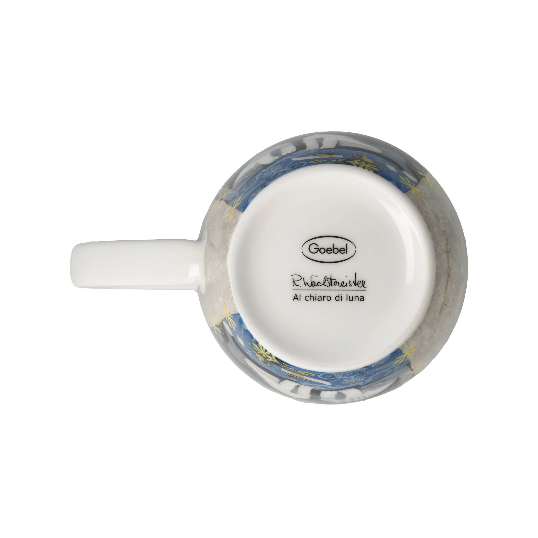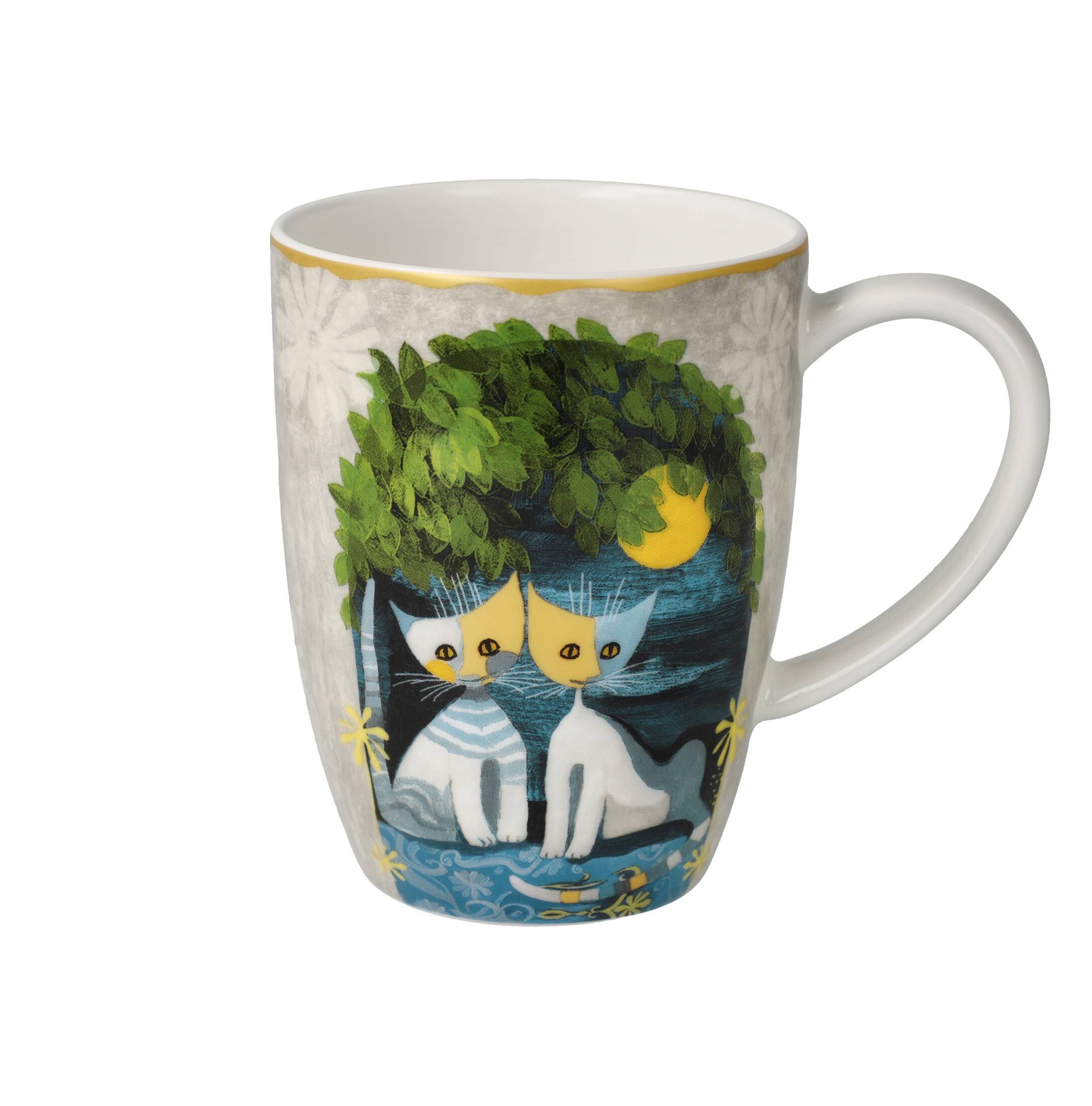 Au clair de lune, deux chats amoureux sont assis. Ils ronronnent doucement, blottis l'un contre l'autre, et profitent du calme de la nuit. La tasse est en fine porcelaine agréablement légère et décorée de peinture métallique.